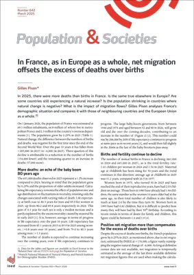 In France, as in Europe as a whole, net migration offsets the excess of deaths over births