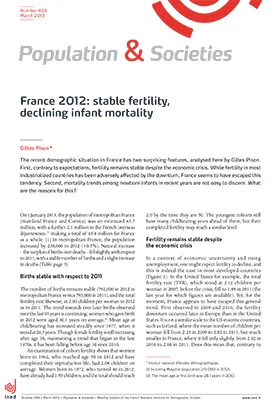 France 2012 : stable fertility, declining infant mortality