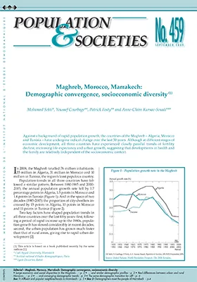In 2008, the Maghreb totalled 76 million inhabitants, with 35 million in Algeria, 31 million in Morocco and 10 million in Tunisia. Although incomes and living conditions vary, population growth has followed a parallel downward trend in all three countries since the 1980s. Differences in mortality rates have been narrowing, while fertility has fallen to low levels throughout the Maghreb. These contrasts are also observed within Morocco, where rural-urban disparities, accentuated by rural exodus, remain large. While income and educational levels still vary by a factor of two, demographic behaviours are converging, despite persisting inequalities in access to healthcare. A detailed district-by-district study confirms these analyses for the population of Marrakech itself.